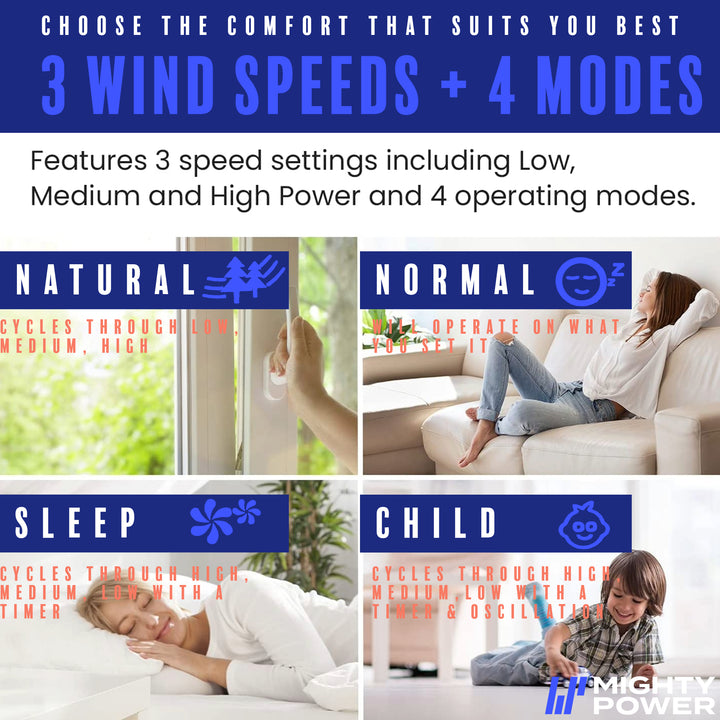 - Natural: Mimics a gentle breeze for a more relaxing experience.