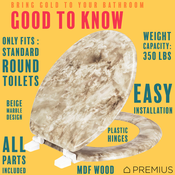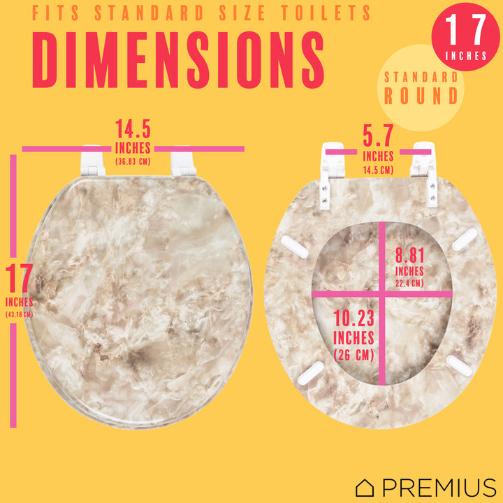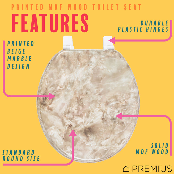 PREMIUS Wood Toilet Seat, Beige Marble, Standard Round, 17 Inches
