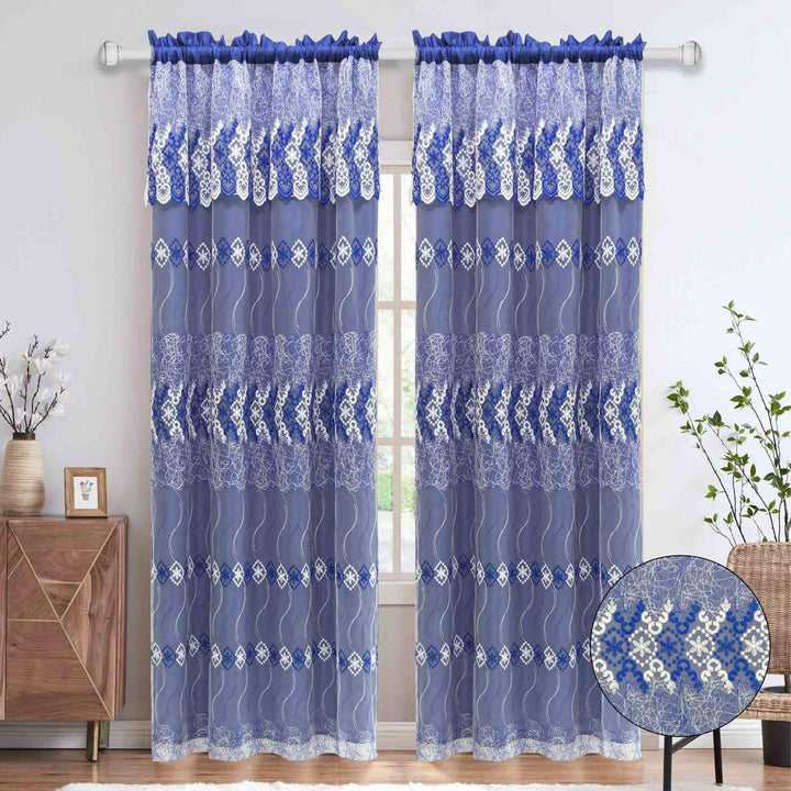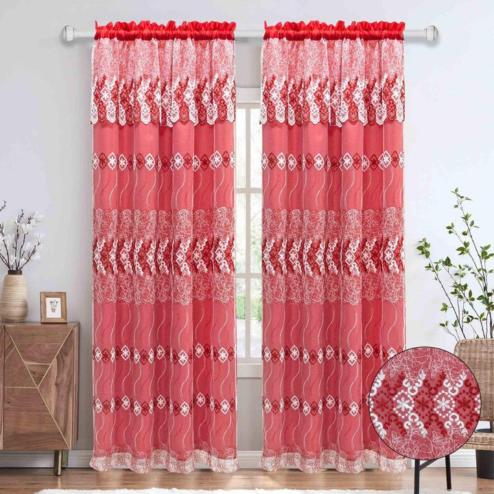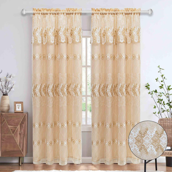 Dana Embroidered Rod Pocket Window Curtain Panel with Attached Valance, 54x84 Inches