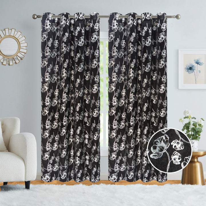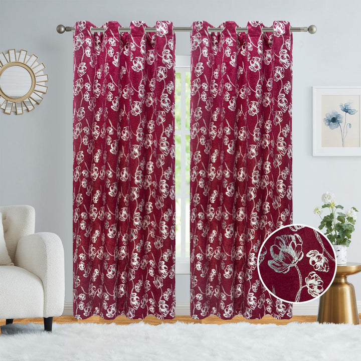 Bring soft style and instant comfort to your room with the Newark Floral Room Darkening Grommet Window Curtain Panel. This stylish 54x84 inch curtain features a beautiful Floral Design that adds a touch of natural charm to your decor. Made from durable polyester, this panel provides excellent room darkening and light blocking capabilities, perfect for ensuring privacy and a great night's sleep. The curtain is also noise reducing and energy efficient, helping to create a peaceful and comfortable environment. Choose from great colors like Burgundy, Blue, and Silver for an instant room refresh.