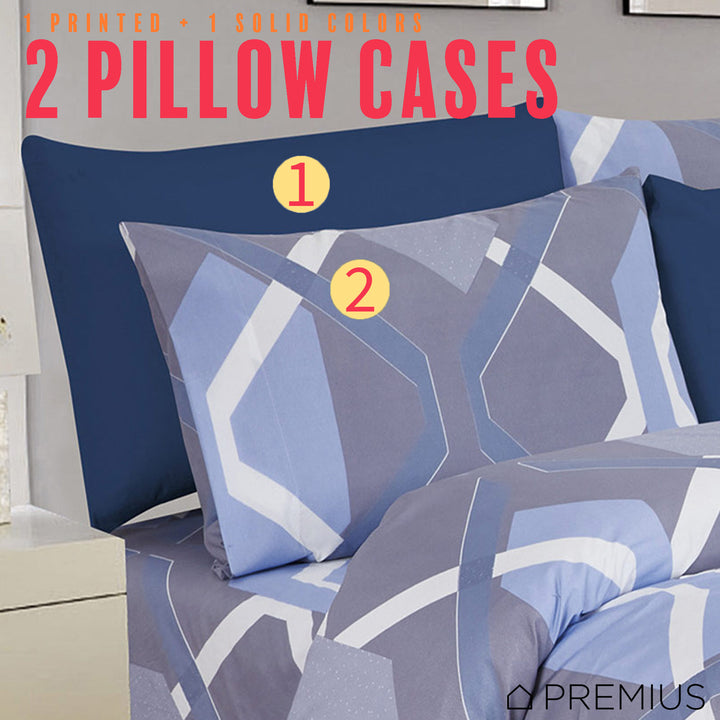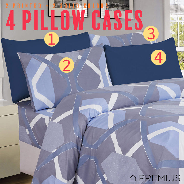 - Twin: 1 Flat Sheet, 1 Fitted Sheet, 1 Printed Pillow Case, 1 Solid Color Pillow Case