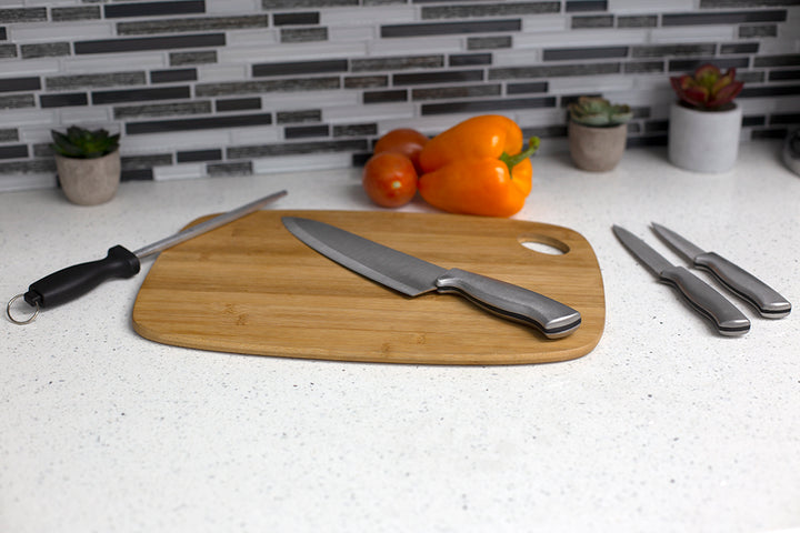 Have all the essential knives you need for every chopping task, while also ensuring they maintain their razor sharp edge with this knife set with blade sharpener. Razor sharp stainless steel non-stick blades. Includes a sharpener. Hand wash.