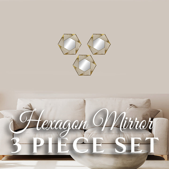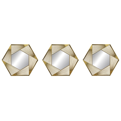 • Set includes: 3 gold-colored plastic mesh hexagon wall decor mirrors