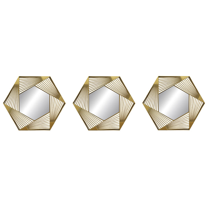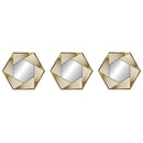 PREMIUS 3 Piece Plastic Mesh Hexagon Wall Decor Mirror Set, Gold, 10 Inches