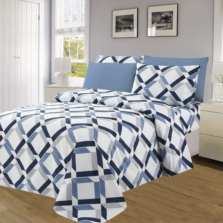 Cool down your sleep space with the sharp, modern vibes of the PREMIUS Premium Bright Wrinkle-Free Sheet Set in the Arctic Grid pattern. This high-energy bedding choice features a crisp geometric design that brings a sleek, metropolitan look to any bedroom. Crafted from premium soft microfiber polyester fabric, these sheets offer a velvety, lightweight touch that makes crawling into bed the highlight of your day. You can ditch the ironing board for good; the wrinkle-free finish ensures your bed looks smooth and professionally styled straight from the dryer. With 14-inch deep pockets, the fitted sheet provides a secure, no-slip fit that stays put no matter how much you move. Whether you are outfitting a trendy city loft or a cozy suburban retreat, this set delivers the perfect mix of contemporary flair and dreamy, breathable comfort.