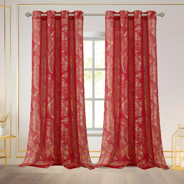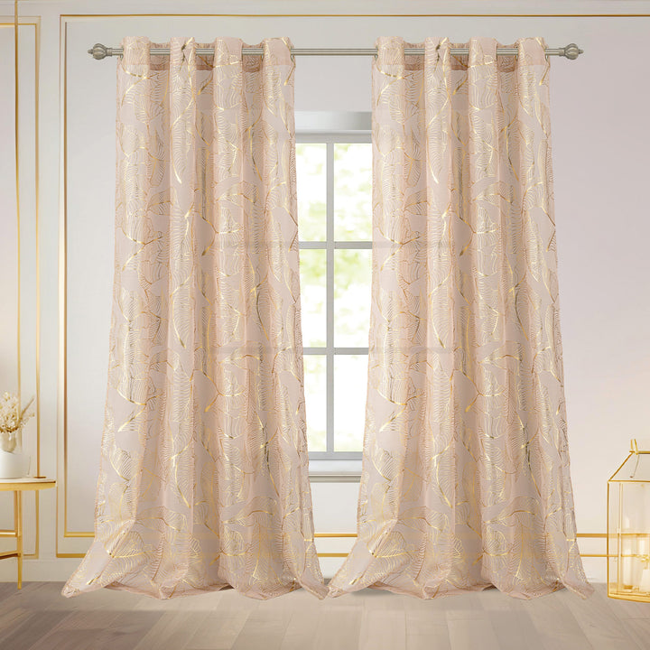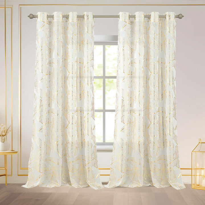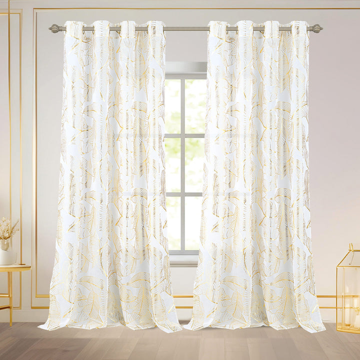 Bring shimmering elegance and soft light into your home with the Kezia Metallic Foil Sheer Grommet Window Curtain Panel. This stylish 54x84 inch curtain features a dazzling metallic foil design that catches the light and adds a touch of glamour to your space. Made from durable polyester, the sheer fabric naturally softens incoming natural light, filling your living room or bedroom with a warm glow while providing daytime privacy. The grommet top ensures easy hanging and a sleek, modern drape.