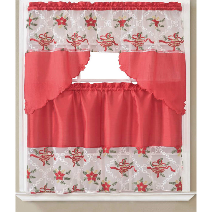 Modernisez votre cuisine dès aujourd'hui ! Commandez dès maintenant votre ensemble de rideaux de cuisine Vanya à franges florales et clochettes de Noël et poinsettia et constatez la différence.