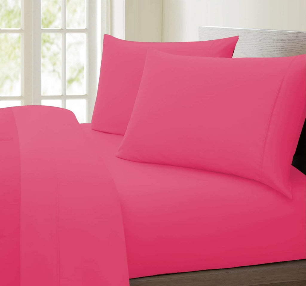 Between the sheets is the place to be, especially when the sheets are right! Whether you’re an early bird or a night owl, the Allessia Wrinkle Free Super Soft Sheet Set will have you wanting to go to bed early and often. Made of 100% polyester, this solid colour wrinkle free sheet set is breathable, crisp and incredibly smooth. The solid-colour style allows it to blend effortlessly with any home decor while adding a vibrant pop! Made of 100% polyester, this sheet set is resistant to wrinkles and shrinking, breathable, durable and crisp. you can be assured that they will serve as your beautiful and fresh linens for the longest time. Now you can dive into the bed of your dreams and get a peaceful night’s rest while staying cool and comfortable in your 5-star hotel bed. This 3-Piece Sheet Set includes: 1 Flat Sheet, 1 Fitted Sheet and 1 Pillowcase. COLOR: Hot Pink. SIZES: Twin, Full, Queen and King.