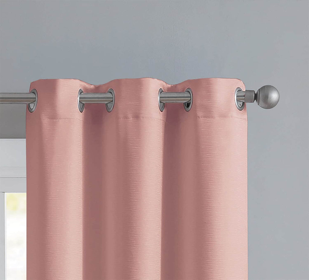 Update the ambiance of any room while maintaining privacy with the Angela ribbed textured blackout grommet window panel. This lovely blackout window panels features a ribbed embossed design on a solid coral fabric that are made of 100% high quality, durable polyester that blocks out 99% of sunlight to any room at any time of the day. This panel is a must have for the day time sleepers as they prevent sunlight from reaching into your room. Also it saves your home heating and cooling costs while it keeps your house warm during the winter and chill during summer’s hot days. Beside that these panels reduces outside noise and give you the highest level of privacy. Great for those looking for a quiet and peaceful environment during the day to enjoy reading books, listening to music, take a nap or turn the room into a home theater to enjoy watching their favorite movies. The Angela ribbed textured blackout grommet window panel will give your home a cool and elegant update that will coordinate easily with your home decor. Each panel features 6 silver colored grommets that fits in curtain rods up to 1.5 inches for easy installation and long use. CARE: Dry clean only. MATERIAL: 100% Polyester. INCLUDES: (2) 37x84 Inches Panels. SIZE: 37x84 Inches each, TOTAL 74x84 Inches. PHOTO SHOWS: 2 Panels. Package includes 2 Panels. COLOR: Coral
