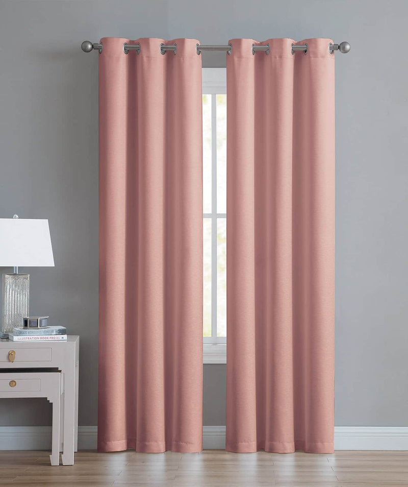 Angela 2-Pack Ribbed Textured Blackout Grommet Window Panel, Coral, 74x84 Inches