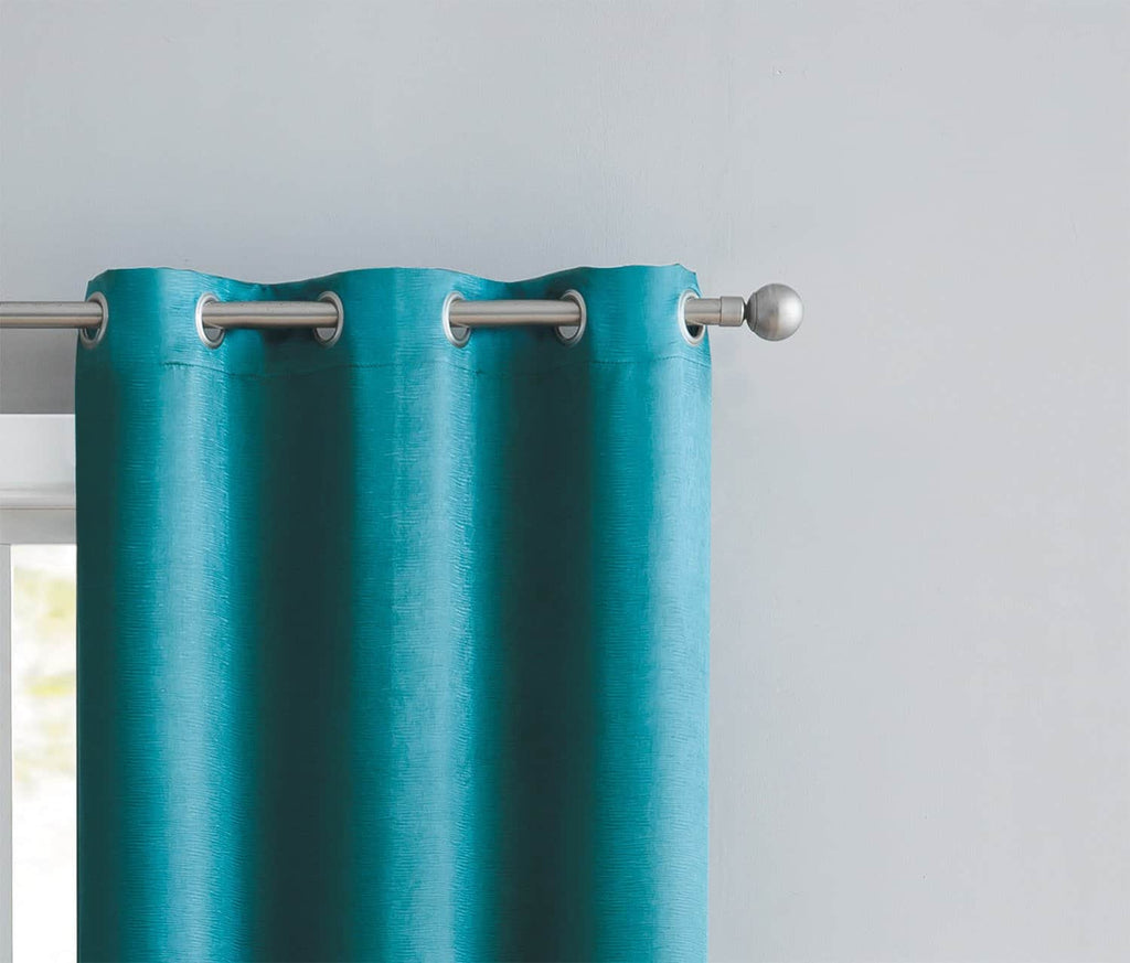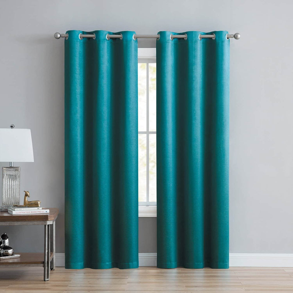 Update the ambiance of any room while maintaining privacy with the Angela ribbed textured blackout grommet window panel. This lovely blackout window panels features a ribbed embossed design on a solid teal fabric that are made of 100% high quality, durable polyester that blocks out 99% of sunlight to any room at any time of the day. This panel is a must have for the day time sleepers as they prevent sunlight from reaching into your room. Also it saves your home heating and cooling costs while it keeps your house warm during the winter and chill during summer’s hot days. Beside that these panels reduces outside noise and give you the highest level of privacy. Great for those looking for a quiet and peaceful environment during the day to enjoy reading books, listening to music, take a nap or turn the room into a home theater to enjoy watching their favorite movies. The Angela ribbed textured blackout grommet window panel will give your home a cool and elegant update that will coordinate easily with your home decor. Each panel features 6 silver colored grommets that fits in curtain rods up to 1.5 inches for easy installation and long use. CARE: Dry clean only. MATERIAL: 100% Polyester. INCLUDES: (2) 37x84 Inches Panels. SIZE: 37x84 Inches each, TOTAL 74x84 Inches. PHOTO SHOWS: 2 Panels. Package includes 2 Panels. COLOR: Teal