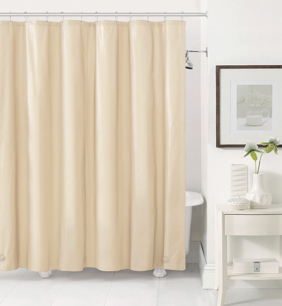 Quality and durability is what you will get with the Aqua Block Premium Heavy Weight PEVA Shower Liner. This odorless, draft resistant shower curtain liner is both stylish and functional, as it can be used as a protective liner for a fabric shower curtain or a stand-alone curtain! It will provide you with long lasting quality and the solid beige color allows it to effortlessly blend in with your bathrooms decor. Made of 1000% PEVA. PEVA stands for polyethylene vinyl acetate (PEVA). PEVA shower curtains do not contain the chlorinated molecules like PVC’s, found in the older vinyl shower curtains, and therefore it’s a much safer choice when it comes to choosing a plastic shower curtain. Because PEVA is non-chlorinated this is the perfect option and considered environmentally friendly. Choosing this shower liner is choosing quality and durability! Soft and pleasant to touch, it is mildew resistant, the color won’t fade, very easy to clean, inexpensive, unaffected by moisture, low maintenance and more! You won’t believe the advantages of having THIS shower curtain liner! The shower liner has 12 metal grommets and magnets at the bottom. Measuring 72x72 inches for full coverage, the reinforced mesh header and never-rust copper grommets will keep your curtain in place, prevent tearing from the rings, and the suction cupped hem will keep water in the tub. It’s super easy to clean too; just wipe with a damp washcloth! Most shower curtain liners are made of thin plastic and are more trouble than they’re worth. However, with the Aqua Block Premium Heavy Weight PEVA Shower Liner, you won’t be disappointed. COLOR: Beige. DIMENSIONS: 72x72 Inches