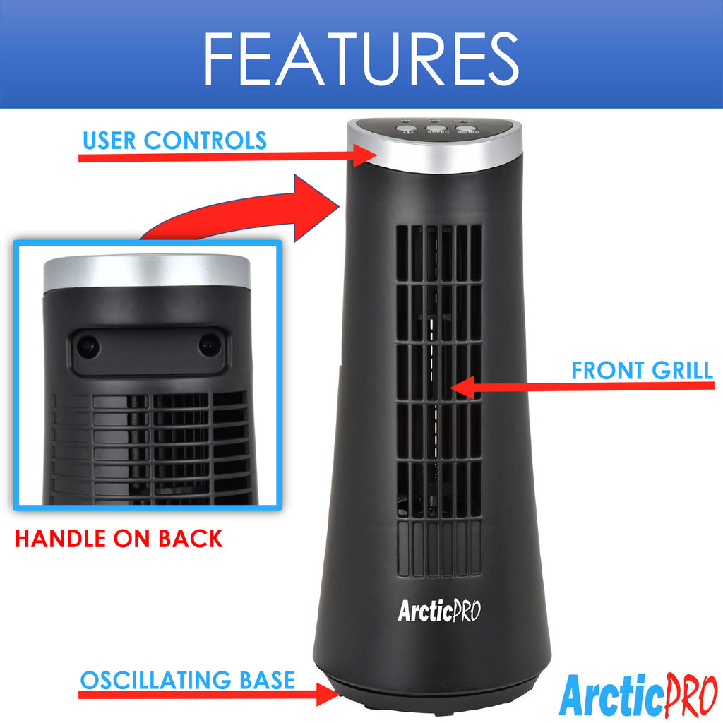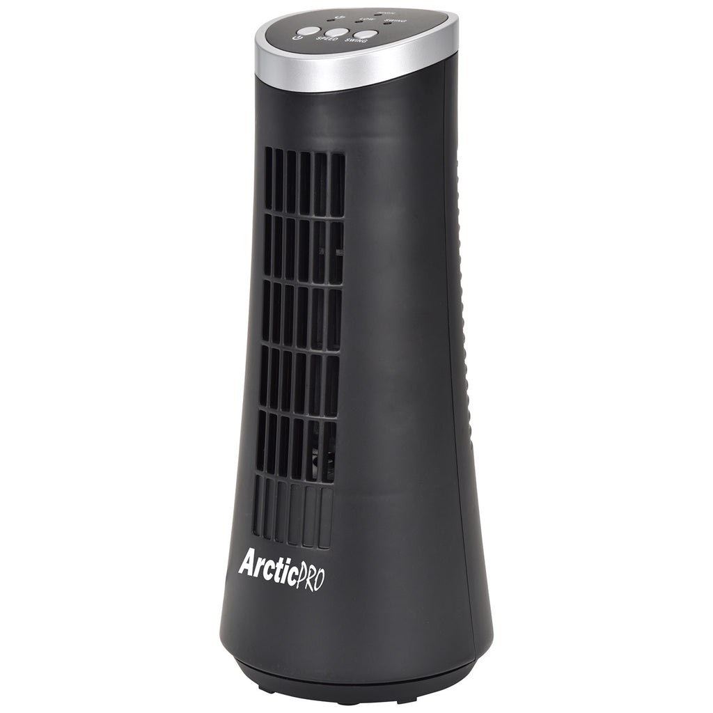 Arctic-Pro Desktop Oscillating Slim Mini Tower Fan, Black, 12 Inches