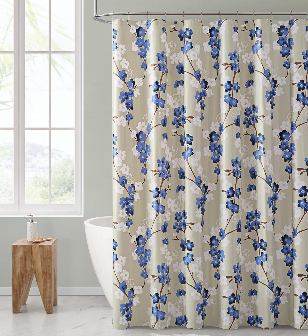 Give your bathroom a bold pop of color with the Aroon Climbing Flowers PEVA Shower Curtain. Perfect for your master, kids or guest bathrooms, this shower curtain features a colorful and eye-catching floral design of climbing flowers in blue, brown and white on a beige backdrop to give your bath décor a fresh and modern update. Whether you like contemporary or traditional designs, this bath set will refresh any bathroom decor with a look that’s guaranteed to amaze! This easy-care fabric shower curtain is made of 100% PEVA, choosing this shower curtain is choosing quality and durability! Soft and pleasant to touch, their color does not fade, they are very easy to clean, mold and mildew resistant, inexpensive, unaffected by moisture, low maintenance and more! Their strength will prevent water from leaking out onto the floor. Contain the sprays and splashes of shower time in style with the Aroon Climbing Flowers PEVA Bath Set. CARE: Shower Curtain: wipe clean with a damp washcloth. COLOR: Navy. SIZE: 72x72 Inches.