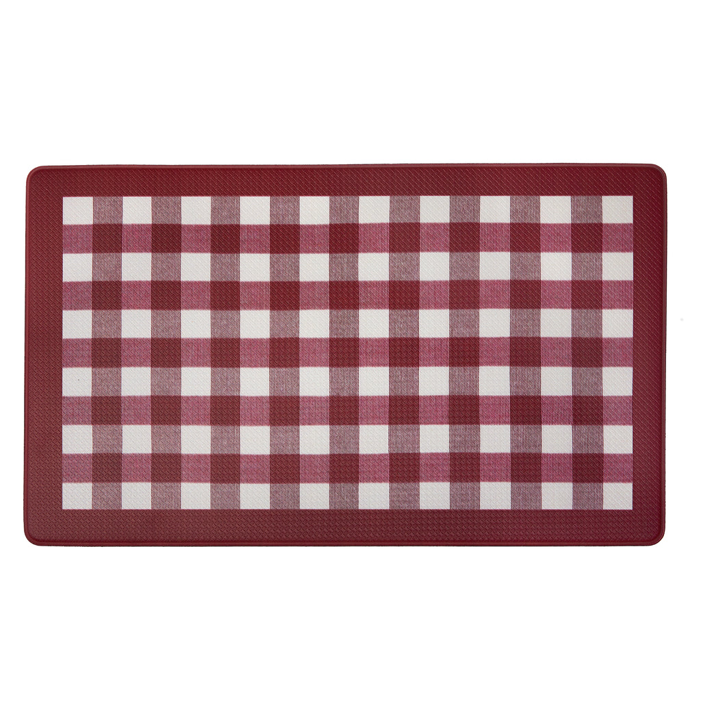 Get the spring back in your steps and reclaim your energy! Standing for long periods of time can take a toll on your muscles and joints. With these Buffalo Check Decorative Anti Fatigue mats, standing while you work has never been so comfortable! Place these mats where you stand most and enjoy its superior comfort and relief while you work. The gingham design allows it to blend right into your existing decor while adding some style. Its cushiony foam will conform to the contours of your feet and reduce fatigue while you stand. The beveled edges and non-slip back means that your new mat will stay in place and prevent tripping and falling. Strong and durable, these Anti Fatigue mats are puncture and tear resistant and will last for a very long time. These Buffalo Check Decorative Anti Fatigue mats are super easy to clean. You can clean it with a brush, broom or vacuum. Occasionally, rinse with a garden hose and leave to air dry. Invest in your well-being because you’re worth it. DESIGN: Buffalo Check Gingham Checkered. DIMENSIONS: 18x30 Inches. COLOR: Burgundy-White.