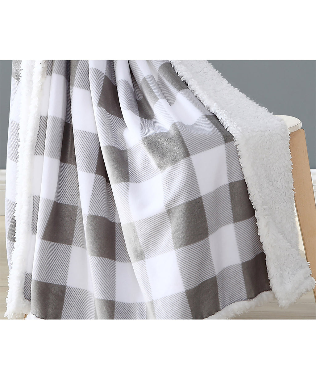 Buffalo Check Flannel-Sherpa Throw Blanket, Grey, 50x60 Inches