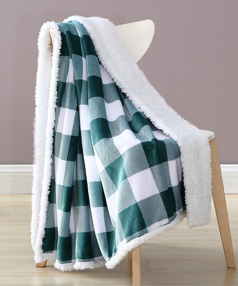 Get cozy and warm with this extremely soft and fuzzy Buffalo Check Flannel/Sherpa Throw. Perfect for snuggling up on the couch, bed, chilly movie theatre, park or ideal personal gift for friends or relatives. This throw features a vibrant and simple buffalo check design in hunter blue. Add texture to your decor and turn your room into an inviting space by draping it over your favorite chair, sofa or bed to add an exotic stylish touch to your home’s decor. Made of 100% polyester, this flannel throw is resistant to wrinkles, shrinking, mold and mildew so it will last a very long time. COLOR: Hunter. DIMENSIONS: 50x60 Inches.