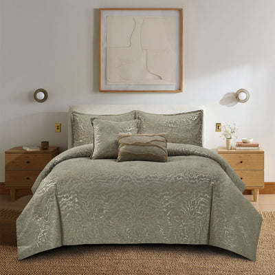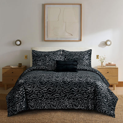 - The Complete Bedroom Transformation Kit! This 5-piece set has everything you need for a perfectly coordinated and stylish bedroom. It includes a plush comforter, two matching pillow shams, and two decorative pillows (with cool carved texture!) to add extra flair.