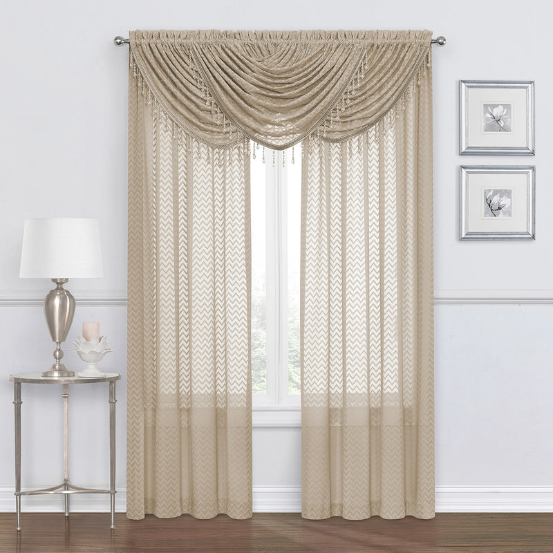 Chevron Zig Zag Sheer Rod Pocket Window Panel and Valance Treatments, Linen