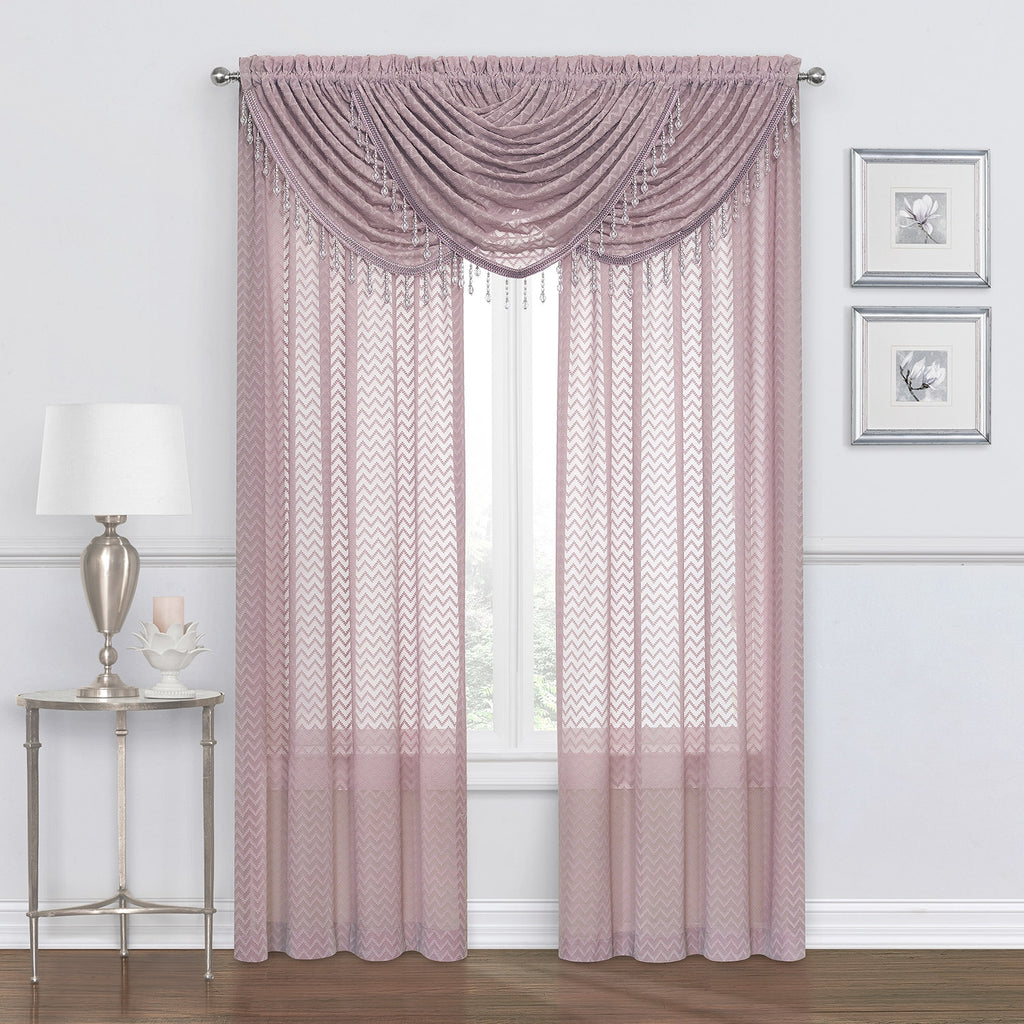 Chevron Zig-Zag Sheer Rod Pocket Window Panel and Valance Treatments, Plum