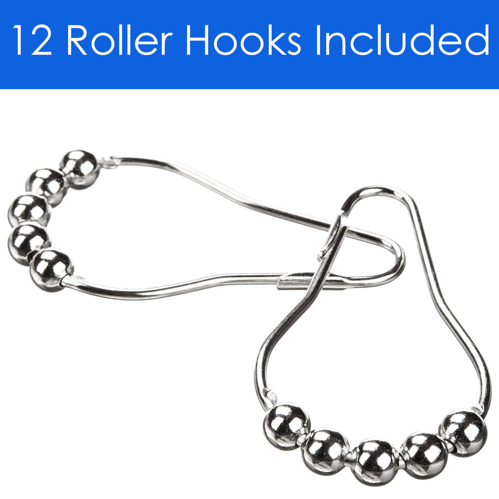 Instantly refresh and update the appearance of your bathroom with the Clermont 13-Piece Printed Shower Curtain Set With Hooks. This beautiful shower curtain set features a bold printed geometric design with paisley inspirations in blue and white on a semi sheer colored background. The unique design is sure to beautify any bathroom space and add a modern touch. This shower curtain set will match well with various color schemes of towels, rugs, bathroom mats and any other bathroom accessories. Made of 100% polyester, this shower curtain set is resistant to wrinkles and shrinking. Polyester is breathable which means that it’s not prone to mold and mildew. The set comes with 12 beaded roller hooks for an elegant touch. When it’s time to spruce up your new shower curtain, save time and pop it into the washing machine as the curtain set is machine washable. COLOR: Blue-White. DIMENSIONS: 70x72 Inches. SET INCLUDES: One Shower Curtain and 12 Beaded Roller Hooks.