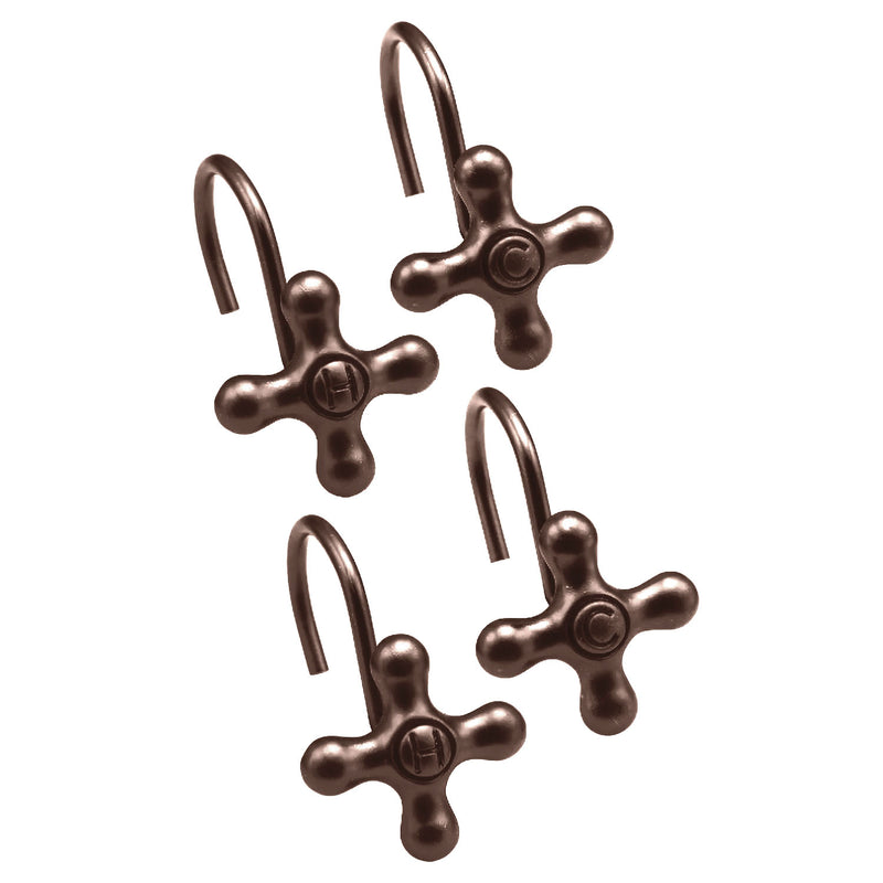 Colonial Hot and Cold Faucet Shower Hooks are high quality and give a vintage look. These metal shower hooks offer the chic finishing touch to your bathroom. Hooks easily slide over your shower rod are rust-resistant and are designed to keep your shower curtain neat and secure. Features: Rust-resistant. Set of 12 shower hooks. Color/Finish: Orb.