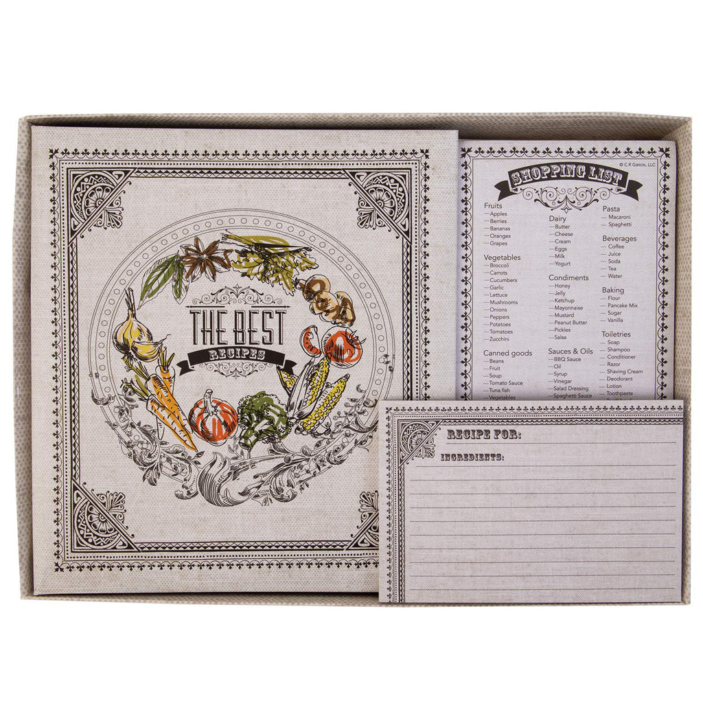 Create your own delicious homemade recipes or pass down your family traditional meals with the Do-It-Your-Self My Recipe Journal Set by C.R. Gibson. It includes a 3-ring recipe book for you to store, itemize, and keep the recipe instructions for all your favorite dishes. It has 20 PVC-free pocket page sheets that are free of any toxins and additives. It also includes 40 Recipe Cards for a quick reference to your favorite recipes. Neatly store and itemize your delectable creations of consumption with the 12 Tabbed Divider Pages. It’s a great gift for someone who loves their keep-sakes meticulously organized and accessible. This set includes a deluxe magnetic grocery shopping pad to quickly jot down your grocery list. You won’t forget to remember any significant ingredient or supplies. Take this recipe journal set home and begin creating family traditions that will keep on lasting. CONTENTS: 3-ring Recipe Book, 20 PVC-Free Pocket Page Sheets, 40 Recipe Cards, 12 Tabbed Divider Pages and 1 Deluxe Magnetic Grocery Shopping Pad. COLOR: Beige.