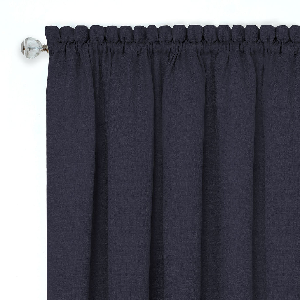 Darcy 3-piece kitchen curtain valance & tiers set will elegantly lift your kitchen window and allows light to come in to the room. This Kitchen curtain features double layer and its textured mesh materials. 100% Polyester, Machine washable in cold water. Delicate cycle, Mild detergent no bleach. Tumble dry low heat, Warm iron if necessary. Color: Navy and white. Size: 58" x 14" and 58" x 36".