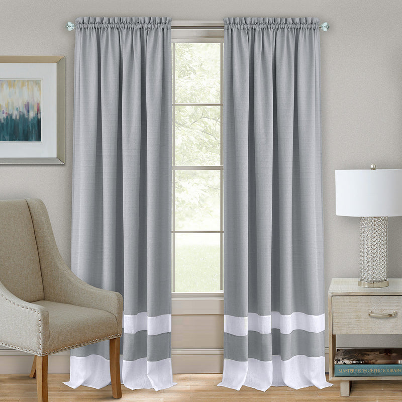 Darcy Textured Rod Pocket Window Panel, Grey-White, 52x84 Inches