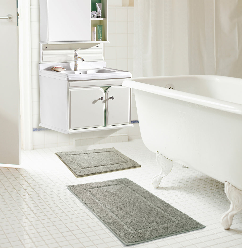 Instantly give your bathroom a stylish modern feel with this Derby Microfiber 2-Piece Bath Mat Set. This luxurious bath mat set is soft, comfortable and features traditional rectangular borders in a solid Silver color. Made of 100% polyester microfiber, this rug is durable and will serve as your beautiful bath set for the longest time! Polyester fiber is resistant to wrinkles, shrinking, mold and mildew. Polyester fabric is breathable and dries quickly when wet. This excellent bathmat set is conveniently machine washable for easy care and impressive longevity in your home. The thermoplastic rubber backing will keep your new mat securely in place in any situation, providing a safer area for kids, elderly persons any adults in the home. This bath set INCLUDES 2 pieces: One Large Mat (20x32 Inches) And One Medium Sized Mat (17x24 Inches). COLOR: Silver. SIZE: 20x32 Inches and 17x24 Inches. CARE: Machine Wash Cold Separately, Gentle Cycle, Do Not Bleach, Line Dry, Do Not Dry Clean, Shake Regularly to Lift Pile.