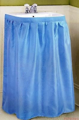 Dobbie fabric sink skirt. New elegance for your sink latest decorator. Converts your sink into a fashionable vanity. Fits all standard size sinks, Water repellent. Latest decorative color. 100% polyester. Color: Blue. Size: 55.5" Long x 35.5" Wide.