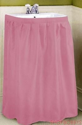 Dobbie fabric sink skirt. New elegance for your sink latest decorator. Converts your sink into a fashionable vanity. Fits all standard size sinks, Water repellent. Latest decorative color. 100% polyester. Color: Pink. Size: 55.5" Long x 35.5" Wide.