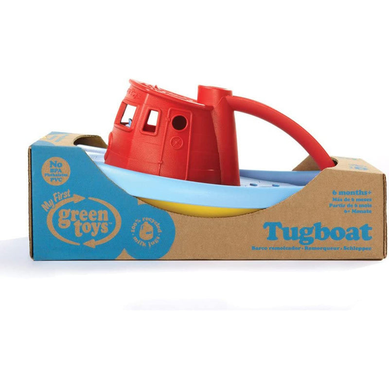 Embark on a cruise across the bathtub. Navigate the wading pool. Even splash around in the occasional mud puddle. There’s no end to the Good Green Fun young sailors can have with the Green Toys Scoop and Pour Fun My First Classic Tug Boat. It is made with 100% recycled plastic milk containers that save energy and reduce greenhouse gas emissions in production and provide safe play for your child. This colourful boat floats great, making it the perfect toy for water play in the tub, the pool, and even at the beach. It has a handle from the wheelhouse to the back deck and a wide-mouth spout at the front to scoop and pour water. Kids love making waterfalls out of the spout, while parents love that it makes bath time (especially hair washing!) fun and enjoyable.Like all Green Toys products, the Tugboat is manufactured in the USA. PRODUCT DIMENSIONS: 4.5 x 9.25 x 4.5 inches WEIGHT: 7.05 Ounces