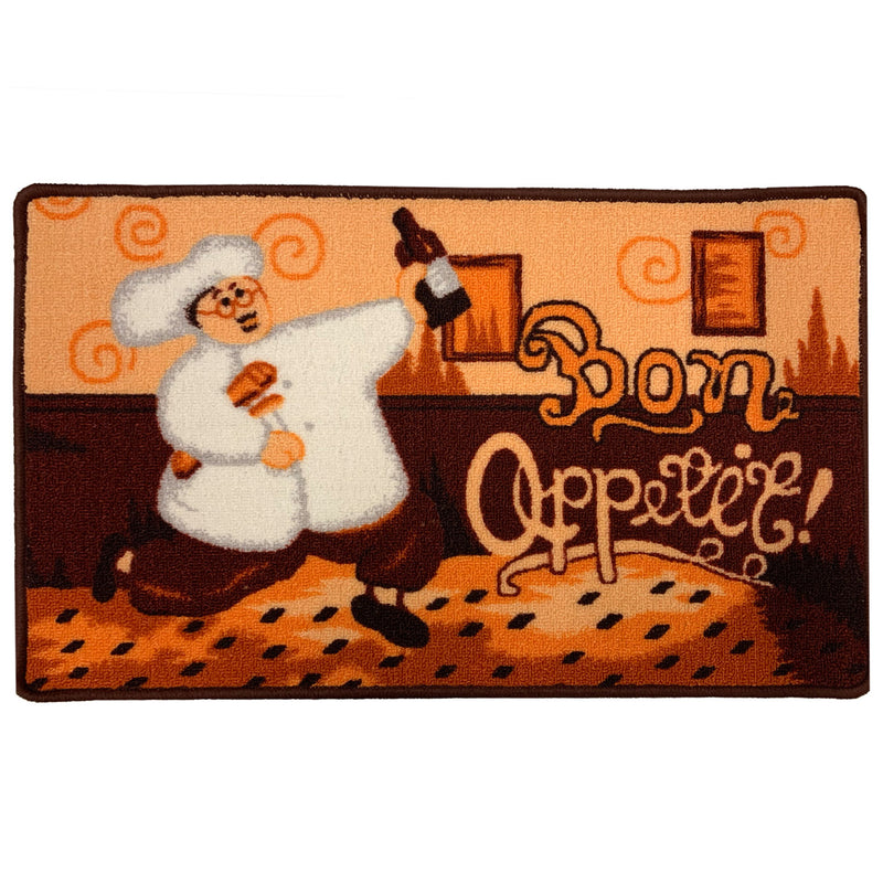 Happy Chef Bon Appetit Printed Kitchen Rug Mat, Brown-White, 18x30 Inches