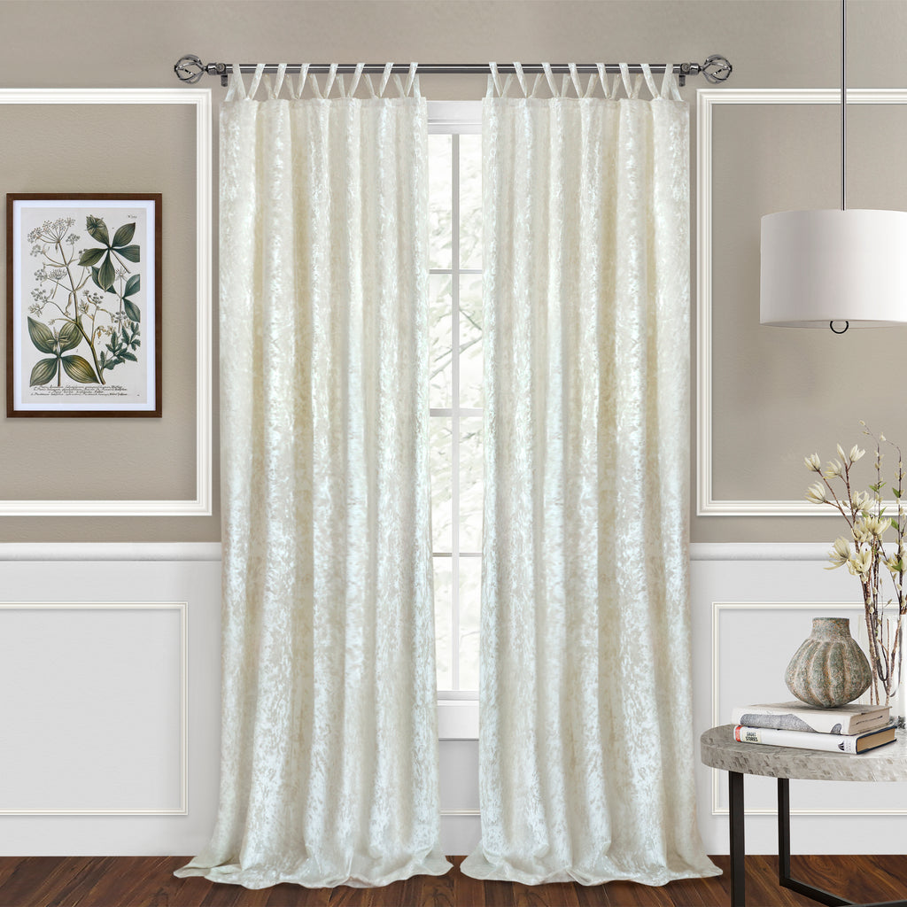 The Harper Criss-Cross tab top window Panel has a unique plush feel that relaxes any atmosphere bringing your home a decorative and calming elegance. These wonderful curtains are super easy to install, all you have to do is push the rod through the criss-cross loops and you will have added a touch of delicate finesse to your home’s decor. The soft and smooth texture of this panel brings an exquisite affect that gently splashes your corridor, bedroom, living room, or dining area with a fun and decorative feeling of comfort. The fabric simply flows freely draping to the floor with a warm and gentle charm. It’s an exquisite way to instantly lavish your home. This panel is the perfect balance of simplicity and sophistication that improves your home style gracefully. You can purchase the Harper plush panel to give that simple free-flowing feel that you can use in your living space. CONTENTS: Picture shows 2 panels, package contains 1 panel. MATERIALS: 98% polyester 2% spandex. CARE: Machine wash cold water, delicate cycle. Light iron as needed on reverse side. HANGING STYLE: Criss-Cross tab top. COLOR: Creamy White. DIMENSIONS: Each panel is 50x84 Inches.