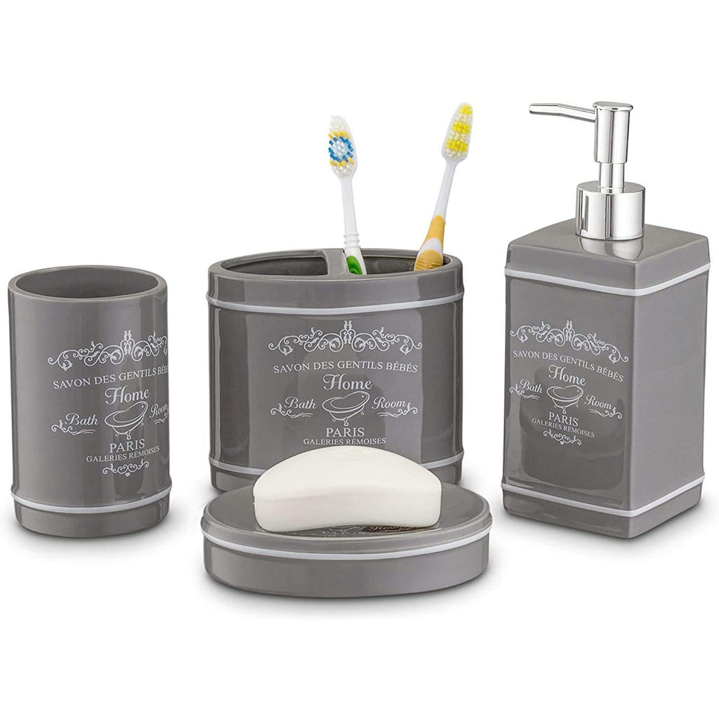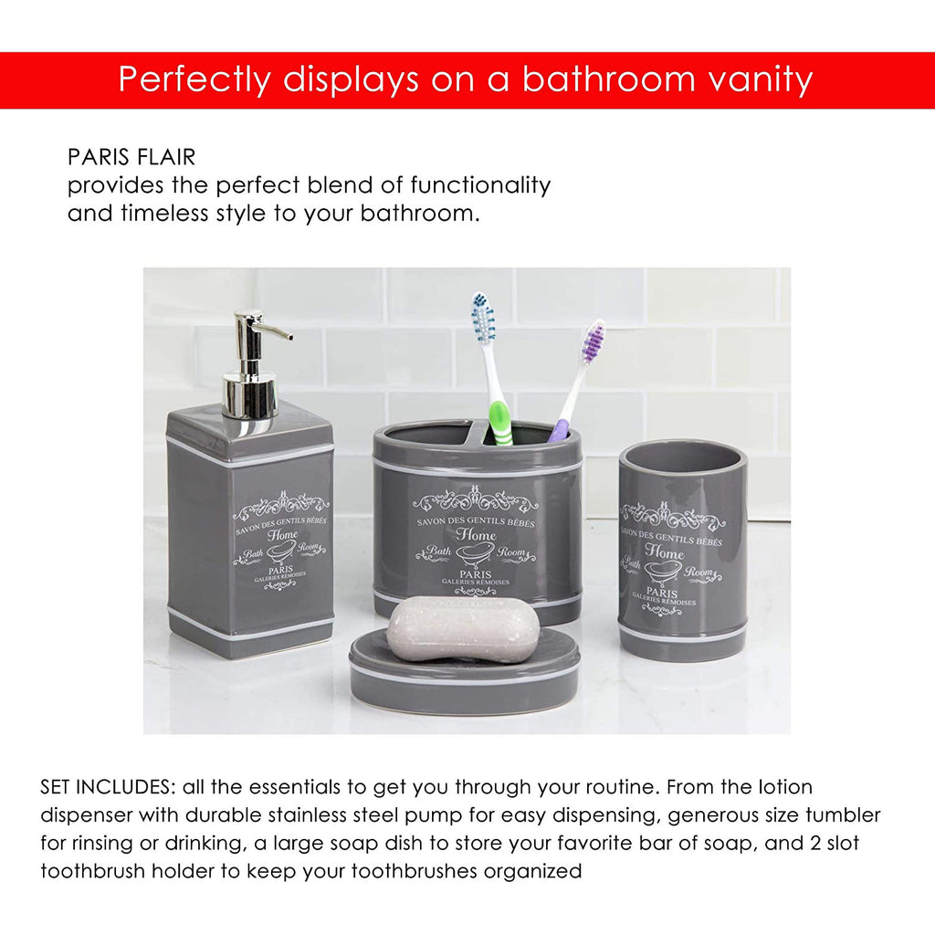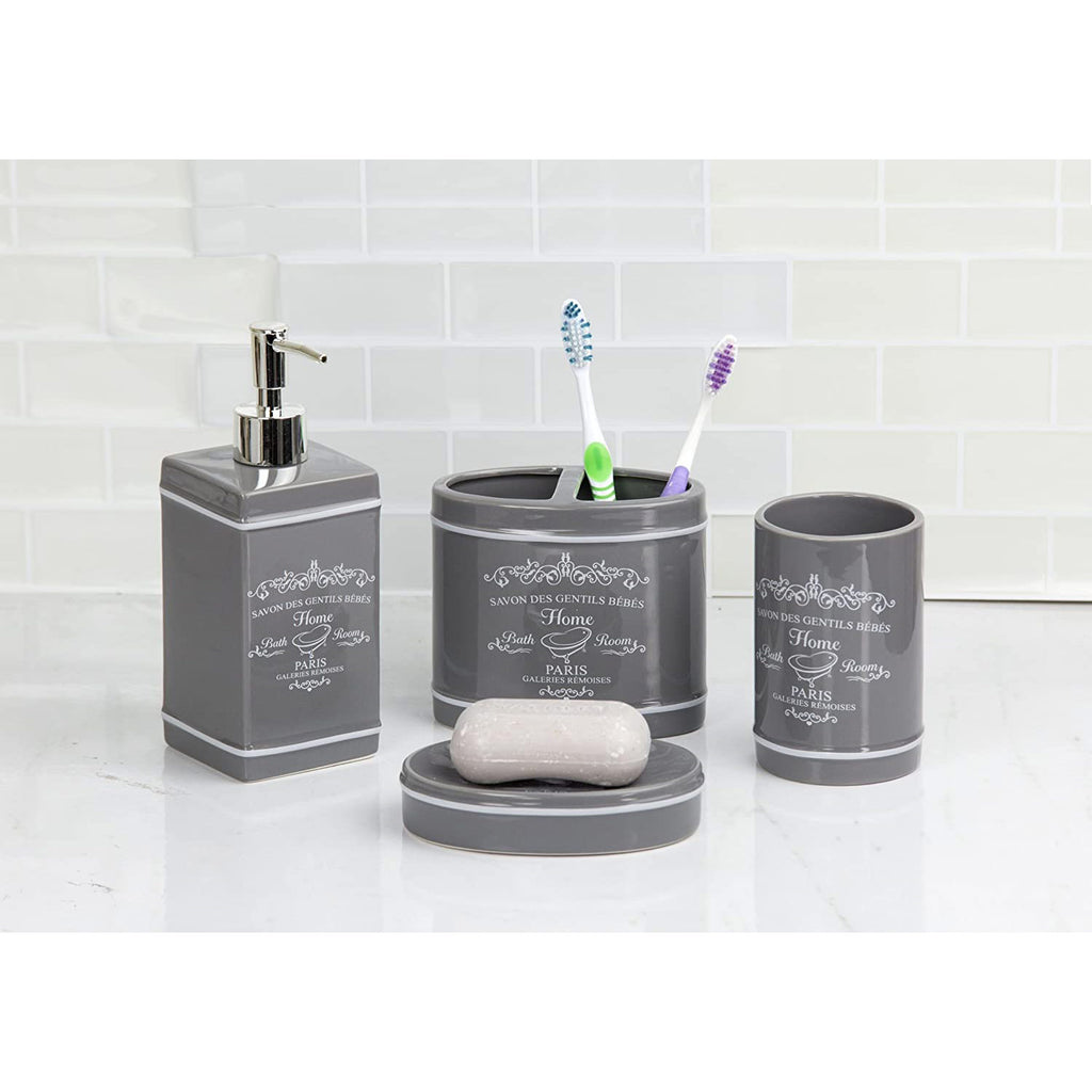 Home Basics 4 Piece Ceramic Paris Bath Accessory Set, Gray