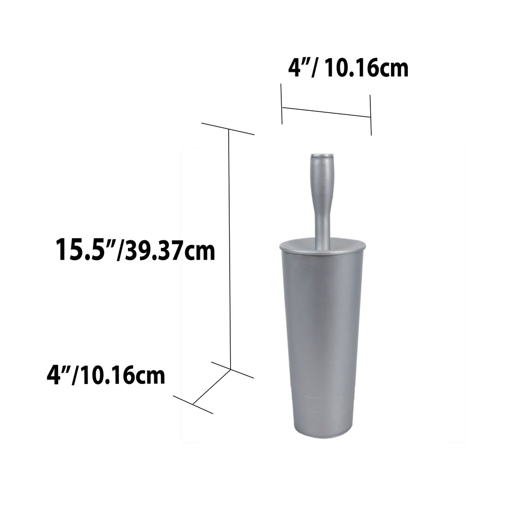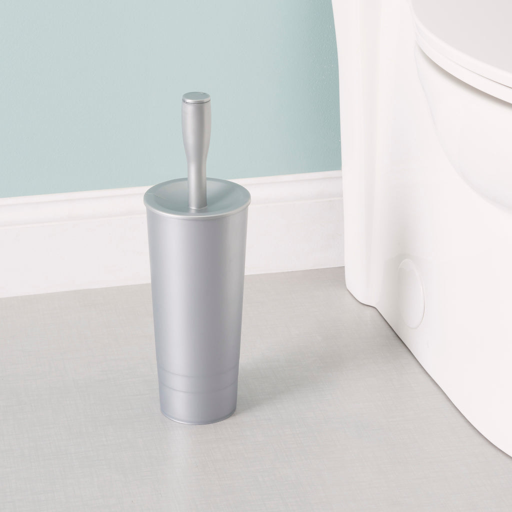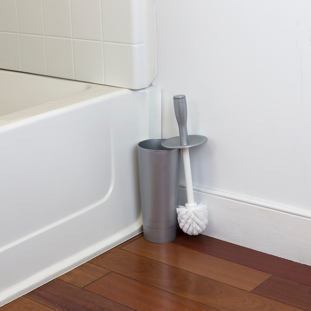 Prevent a dirty looking toilet and keep your bathroom clean and pleasant with the Home Basics plastic Tapered Toilet Brush Holder. The tapered designed brush features durable bristles that gently remove any dirt, dust, debris and other filthy stains making this an effective option for light or heavy housekeeping. Armed with the finest nylon bristles in the market, this toilet brush won’t wear easily, for long-lasting toilet bowl cleaning convenience. The holder is slim in size taking minimal room in the bath. It cleverly conceals the brush and prevents any drippings from spilling over your floor, keeping your bath germ-free for the entire family. With highly durable non-skid bases, this holder stays put and the cleaning brush stays tucked neatly inside until you need it for next time. Deep cleaning toilet brush with contemporary sleek hide-away holder that doubles as beautiful bath décor. Scrub away those stubborn marks and disgusting smears along the edges and bottom of the bowl all while keeping surfaces free from scratches with this stylishly sleek and ultra durable toilet brush and holder. COLOR: Gray. DIMENSIONS: 4x15 Inches.