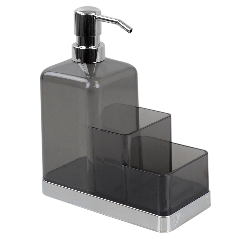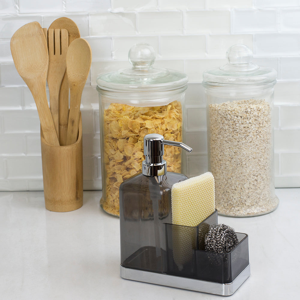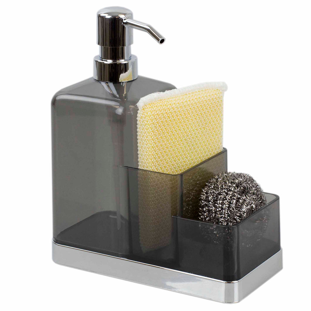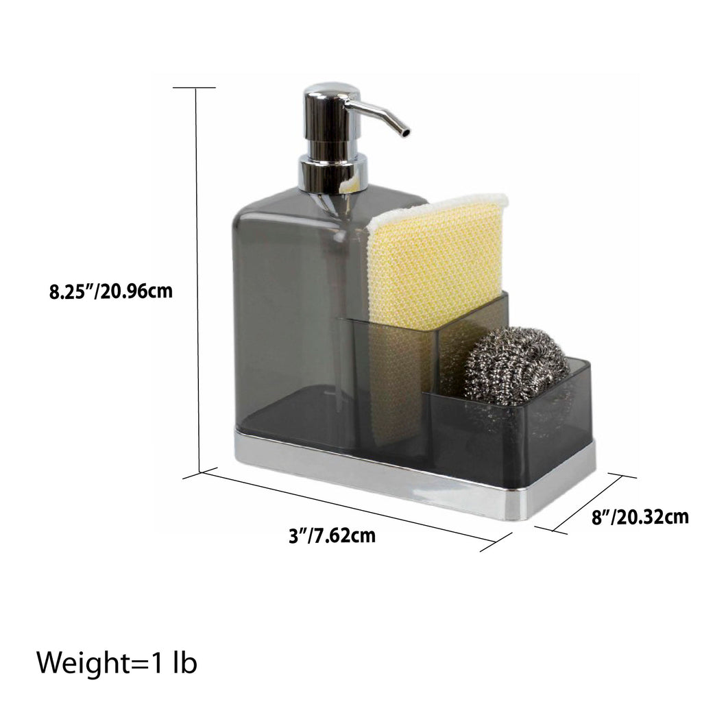 Home Basics Soap Dispenser and Sponge Caddy Organizer, Gray-Silver, 8x3x6.5 Inches