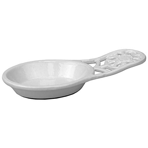 Add the Home Basics Sunflower Collection Cast Iron Spoon Rest to your sunflower collection. It’s the missing piece from your kitchen and the piece that’s here to stay. Built to last, cast iron is one of the best investments a cook can make! Whether it's a rustic granny's kitchen or a semi-pro chef with a six-burner gas range who loves entertaining friends this cast iron trivet will serve for every event. This cast-iron trivet is designed for the modern kitchen but also those hardworking cooking environments that never go out of style. Use it to rest your cooking spoons instead of resting them on the stove. This will save you a lot of time when it comes to the cleanup. Made of heavy weight, durable and rust resistant cast iron, you can be certain that your stove and table surfaces will stay looking brand new! Features a beautiful metallic sunflower design at the end in a vibrant pop of white that will update your kitchen design all in one step by adding a cheerful and charming atmosphere. The non skid weighted base will keep the holder firmly in place on the table surface while your spoons are rested on top. DON'T FORGET TO PAIR WITH THE Home Basics Sunflower Collection Cast Iron Paper Towel Holder AND the Home Basics Sunflower Collection Cast Iron Trivet in white for a complete look! CARE: Hand wash only. MATERIAL: Cast Iron metal. SIZE: 7.5x3.5x1.3 Inches. COLOR: White.