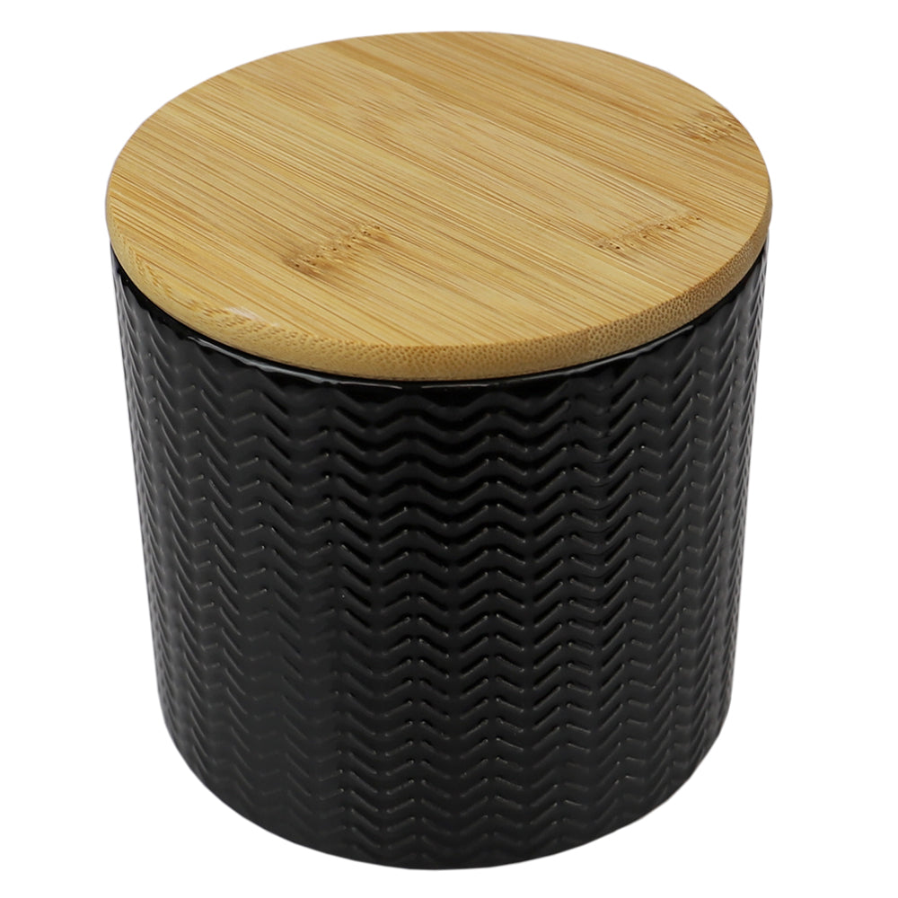 Home Basics Wave Ceramic Canister With Bamboo Lid, Black, Small, 5x5 Inches