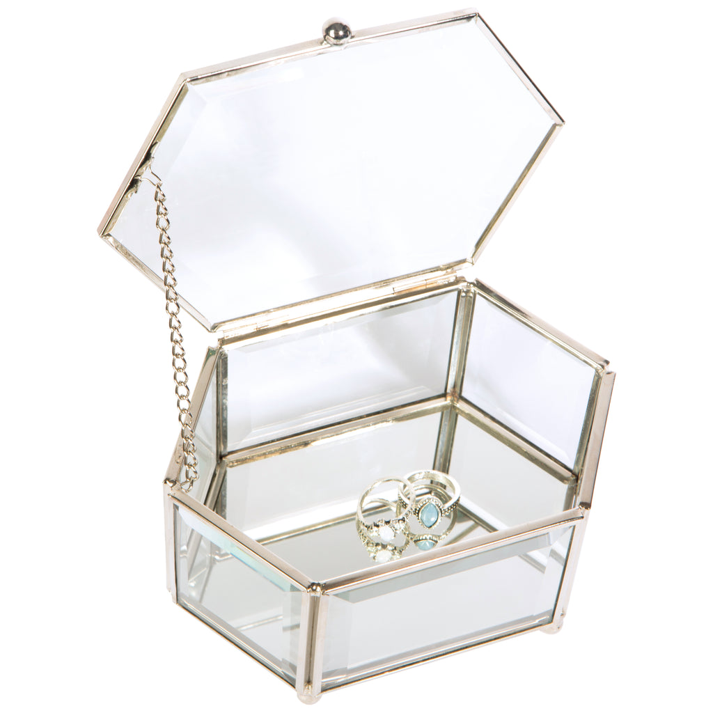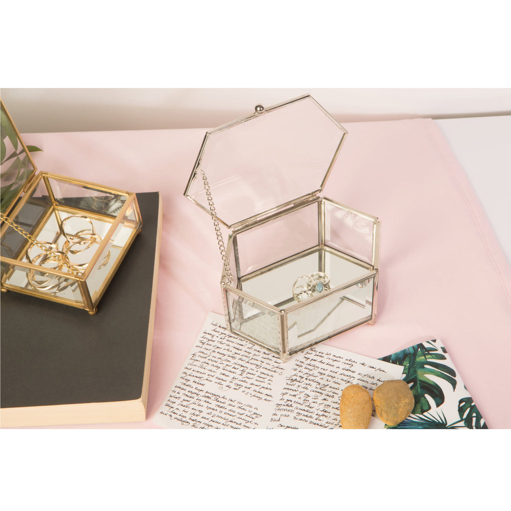 Add the vintage touch to your décor with the Home Details Keepsake Box. The glass box allows you to display your accessories, jewelry and keepsakes in an organized beautiful way. A great addition to your vanity or dresser, can also be used as a décor piece in any room in the house!