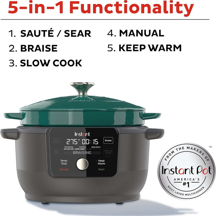 Tired of juggling multiple pots and pans? The Instant Pot Electric Dutch Oven is your kitchen superhero! This 6-quart, emerald green powerhouse combines the beauty of classic cast iron with the convenience of electric cooking. Crafted from durable enameled cast iron, this Dutch oven braises, slow cooks, sears, sautés, and even keeps food warm – all in one pot!