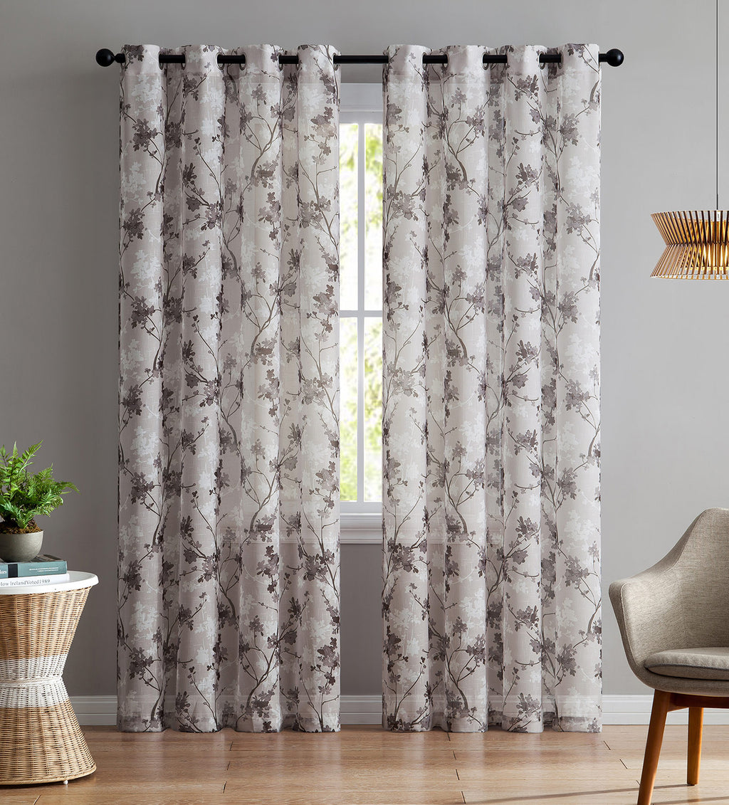 This Jasmine 2-Pack Printed Sheer Panel by Victoria Classics will update any room in your home and its botanical beauty will have you feeling like a princess in a flower garden. Providing a modern and elegant look to your home, this 2-Pack panel set showcases a whimsical floral design on a white background in bright colors for that magical, springtime effect. It’s chic and features a combination of both fashion and luxury It features a beautiful floral design in light and dark chocolate, that has a soft and contemporary look, on a sheer white backdrop. The rich color will instantly create a luxe look that has a warm effect. A quality curtain can make a big difference as curtains are the central decoration in your home and they control lighting. Not only will these curtains hang beautifully and update your home's decor instantly, but they will allow just the right amount of light to enter your home without compromising privacy. The unique design makes them versatile enough for any room and the 8 grommets will make hanging a breeze! Perfect for your home, office, apartment, business or anywhere you would like to hang a beautiful curtain. Adorn your windows with these lovely sheer panels, add finesse to your home and impress your guests! Made from 100% polyester, these curtains have strong fibers that won't wear down as quickly while being flexible and resistant to wrinkles and shrinking. CONTENTS: Picture shows 2 panels, Package contains 2 panels. COLOR: Chocolate. DIMENSIONS: Each panel measures 38x84 Inches, TOTAL: 76x84 Inches.