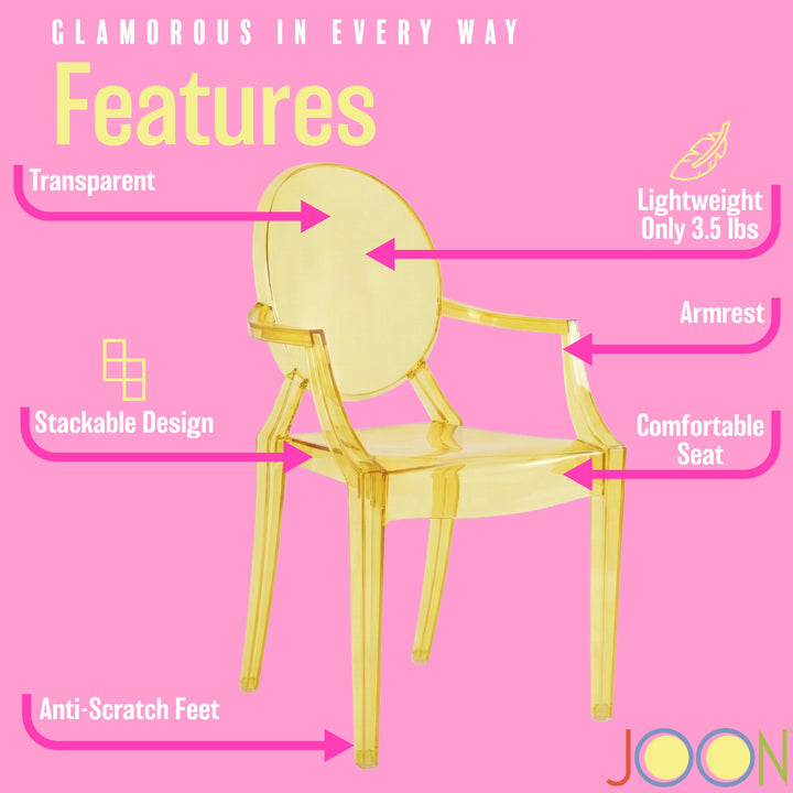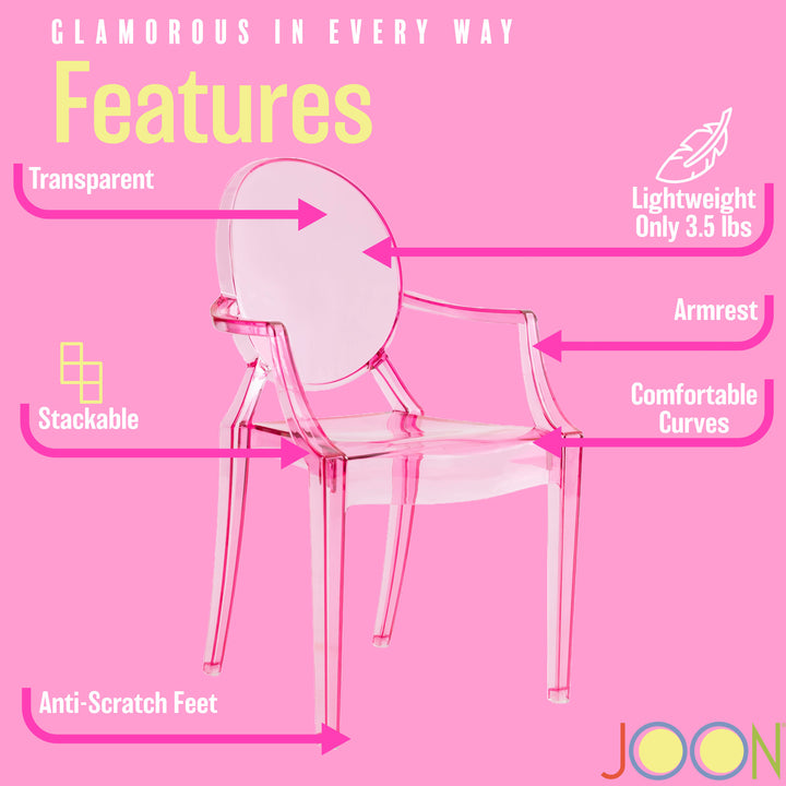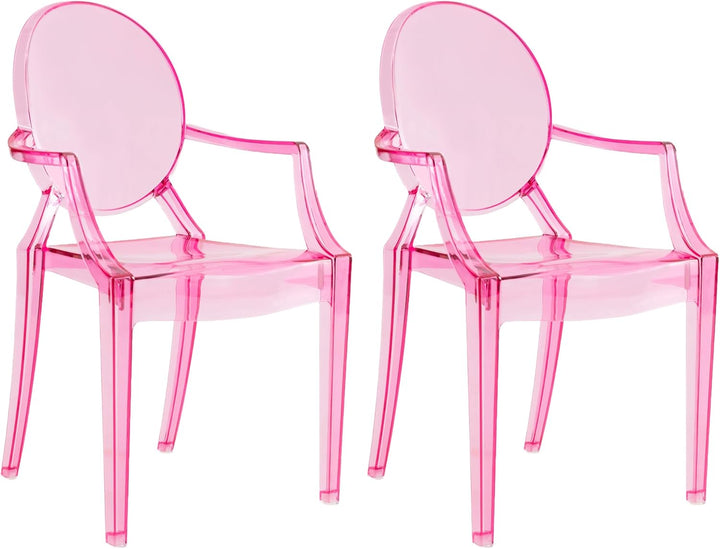 JOON 2 Pack Kids Ghost Chairs with Armrest, 25x13x14.5 Inches, Transparent