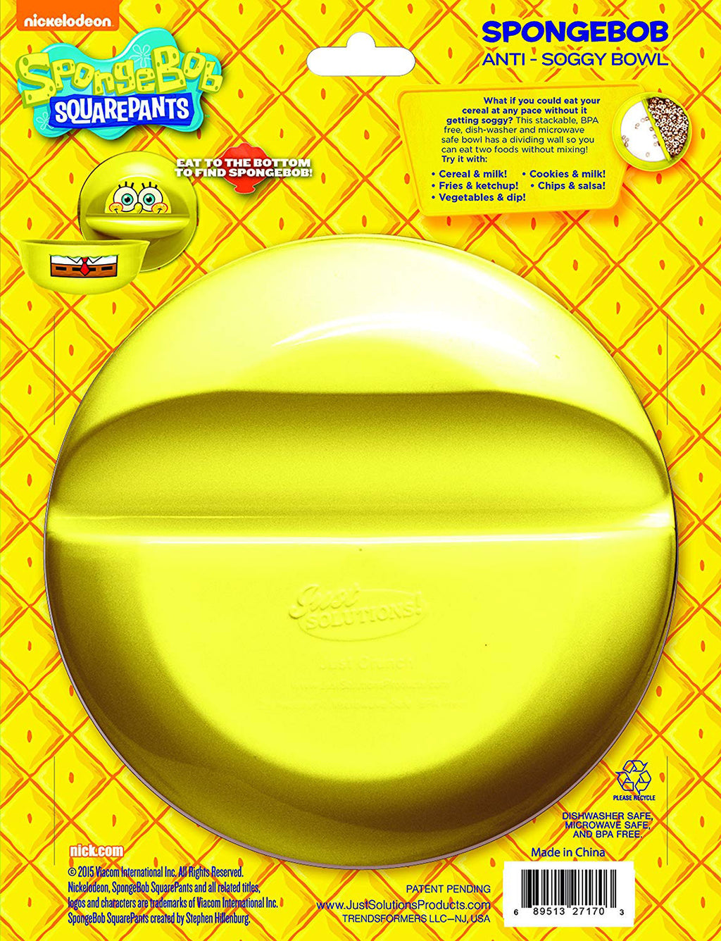 The joy of getting a crunch in every bite is just a click of a button away. Whether it’s cinnamon toast crunch or berry crunch, your cereal will always be crunchy! The Spongebob Squarepants Anti-Soggy Bowl is a unique divided bowl with your favorite Nickelodeon characters. Its unique design will prevent your favorite cereal from getting soggy. Cereal goes into slanted section & is slid into larger milk area as needed. The wonderful daily ritual that is eating cereal often comes to a lackluster end as a result of soggy, over-soaked bites. Not only is it ideal for cereal, but this godsend bowl can also be used for scrumptious french fries and ketchup, ice cream and toppings, chips and dip, pasta and sauces, milk and cookies and many more food combinations. Made of solid BPA-free plastic material, this anti-sog bowl is lightweight and easy to manage for both kids and adults. Buy these special break and chip resistant cereal bowls for your children and the voracious cereal eater in your life. The perfect gift for your loved one! DIMENSIONS: 7x2.3 Inches. COLOR: Yellow.
