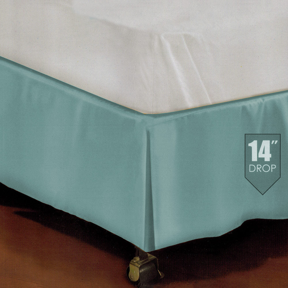 Kennedy Home Collection bed skirt has a tailored fit platform top that you can easily place over your bed frame or box spring. This bed skirt has a 14 Inch Drop and comes in all different sizes and is made with 100% Polyester. Care instruction: Machine washable with cold water. Tumble dry, low heat. No ironing required.