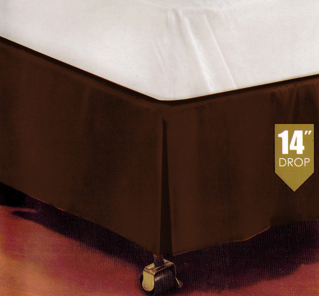 Kennedy Home Collection bed skirt has a tailored fit platform top that you can easily place over your bed frame or box spring. This bed skirt has a 14 Inch Drop and comes in all different sizes and is made with 100% Polyester. Care instruction: Machine washable with cold water. Tumble dry, low heat. No ironing required.