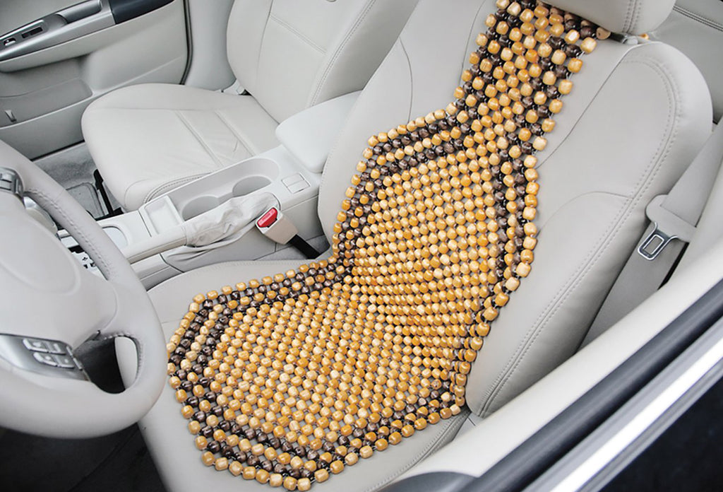 Now you can drive in comfort with the Kool Kooshion Comfort Beads For Cars. designed to give a massage every time you sit down to drive, The beads conform to any seat size and allows air to circulate. gently massage your back and legs while you drive. Made of 90% wooden bead and 5% plastic thread, this durable beaded seat cushion will provide you with support, soothing massages and a comfortable and even air flow. The high-quality long-lasting wooden beads are 100% natural wood beads in a mahogany color stripe. The large wooden beads in a natural finish add a distinctive look and increased comfort to your vehicle interior. Although wood is not much of a "cushion" many users swear by the ventilation of a beaded car seat cushion and others the subtle "massage" provided by the beads during a drive. Driving can be a bore and take a toll, but it doesn’t have to get overwhelming with the beaded comfort cushion. COLOR: Brown. DIMENSIONS: 15X49X1 Inches.