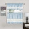 Add a touch of charm and color to your windows with the Live, Laugh, Love 3-Piece Tier and Swag Valance Set. The perfect addition for any kitchen, this vibrant kitchen window curtain set features a strip of white inscribed with the words “Live every moment”, “Laugh everyday”, and “Love beyond words” in both fancy script and subscript text, surrounded by a light blue mini check pattern filled on the inside with hairline stripes in white. This kitchen curtain set will make the perfect companion for any existing decor. The sheer fabric will filter the sun’s light into a warm glow, while providing ample privacy. Add these curtains to your kitchen, laundry rooms or anywhere you would like to hang a beautiful curtain. COLOR: Light Blue. SIZE: (Tier Pair 58x36 Inches) and (Swag Valance 58x14 Inches).
