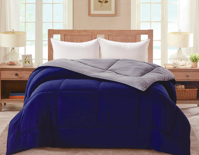 Getting bored of your bedroom’s decor? Madison’s Down Alternative Reversible Comforter is the perfect choice for a stylish updated look to any bedroom space! Down alternative comforters are great for those allergic to down feathers or for anyone on a stricter budget. This down alternative reversible comforter is a deep, vibrant navy blue and features a simple yet classic box pattern. On the reversible side of this comforter is a gray color with the same pattern. This style has stitching that runs vertically and horizontally through the comforter, creating a quilt-like effect. After a long and tiring day of work, you deserve a good night’s rest and Madison’s reversible comforter will create the comforting environment that you desire. Luxury quality without the luxury price tag, Madison’s down alternative reversible comforter is made of 100% polyester. Polyester is resistant to wrinkles and shrinking, and unlike down comforters that tend to flatten out over time, down alternative comforters will serve as your comfortable and cozy comforters for the longest time. Madison Down Alternative Comforter is very easy when it comes to care. Being made of 100% polyester, you can just pop your new comforter into the washing machine on a cold and gentle cycle and it will be ready again in no time as polyester dries quickly when wet. Quality and comfort without compromise! COLOR: Blue-Gray. DIMENSIONS: 66X86 Inches. CONTENTS: 1 Comforter.